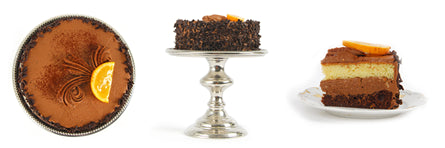 Rich chocolate orange mousse between soft layers of chocolate and vanilla sponge cake.
